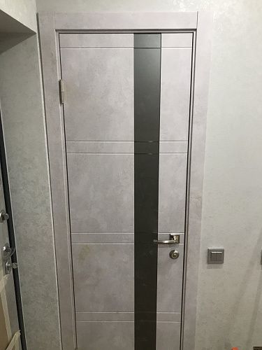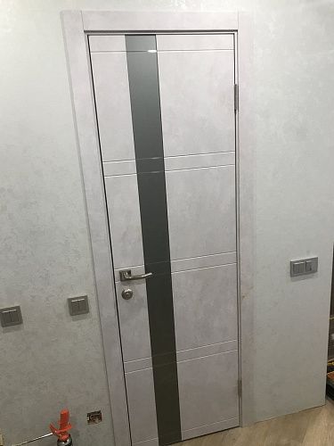Дверь ПО Evolution 1 Бетон лайт стекло зеркало-графит из Экошпона COVERFLEX (Двери Нева) в Тосно с установкой и доставкой